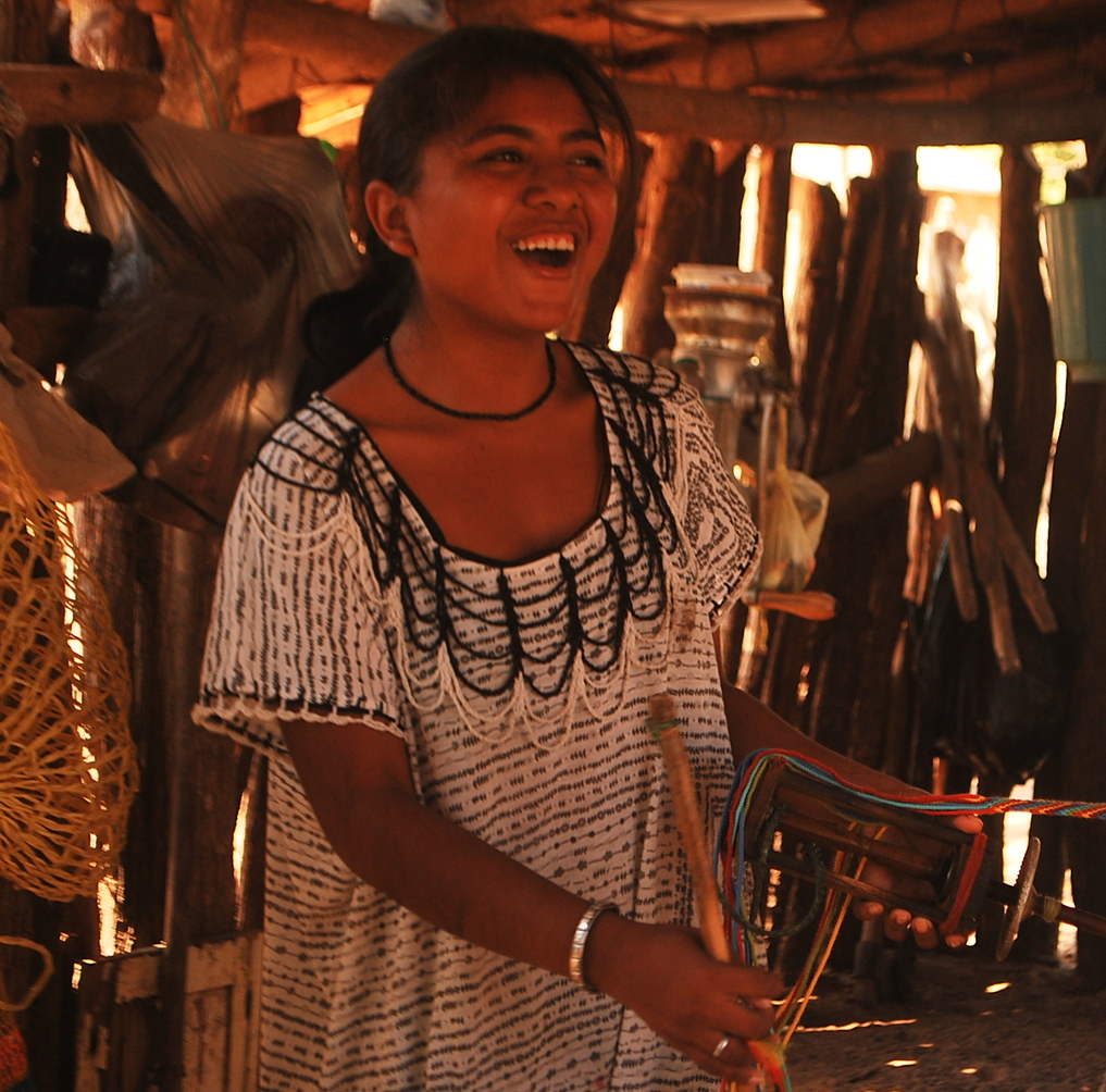 Angelica Epiayu is 18 years old, but don't let her youth trick you. She is an amazing weaver when it comes to making solid color mochilas. She is from the comunidad Wairraka near Maicao. She plans to use the sale of mochilas to fund college.